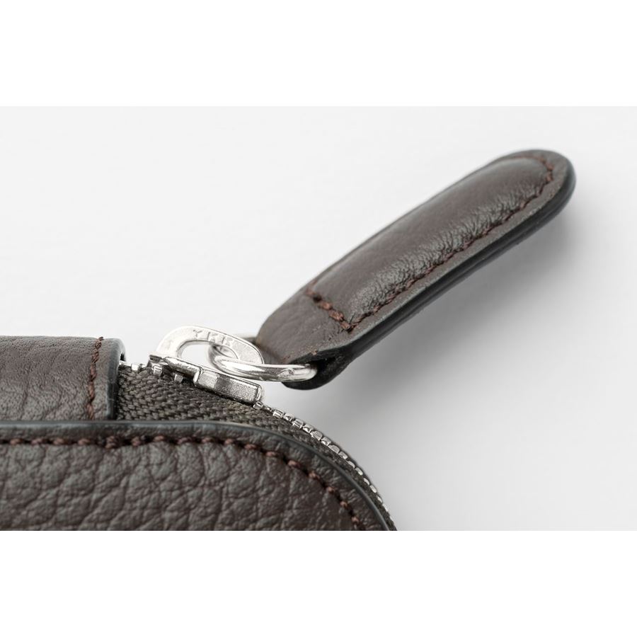 Hộp đựng bút với chất liệu da bê Ý màu nâu sẫm, vân da đặc trưng và khóa kéo thép cứng là điểm nhấn hoàn hảo cho những ai yêu thích vẻ đẹp của các phụ kiện da cao cấp.