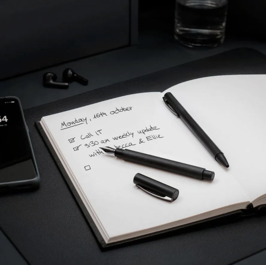 Điểm đặc biệt nhất của Ambition All Black chính là phong cách "All Black" (toàn bộ màu đen) mạnh mẽ và tinh tế. Thân bút được chế tác từ nhựa cao cấp màu đen chải xước (brushed black precious resin) , tạo nên vẻ ngoài hiện đại, sang trọng và đầy cá tính, hoàn hảo cho bất kỳ môi trường làm việc chuyên nghiệp nào . Sự kết hợp hài hòa với các chi tiết kim loại mạ chrome đen mờ (matte black chrome-plated metal) càng tôn lên vẻ đẹp tối giản nhưng vô cùng cuốn hút, thể hiện đẳng cấp của người sở hữu .