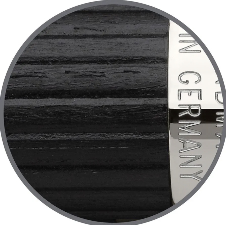 Graf von Faber-Castell đã chọn loại gỗ mun tốt nhất, có màu đen tự nhiên đậm đà, không qua nhuộm màu. Những khác biệt tự nhiên về màu sắc và vân gỗ của loại gỗ quý này khiến mỗi cây bút là một tác phẩm độc bản duy nhất (The natural variations in grain and colouring mean that every writing implement made from them is unique) .