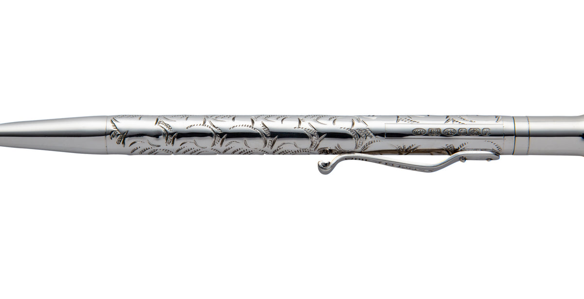 Bút bi bạc Yard-O-Led The Perfecta Victorian là hiện thân của sự thanh lịch và tinh tế, với thiết kế thân thon mảnh và phần đuôi hơi loe đặc trưng, gợi nhớ đến phong cách đầu thế kỷ 19 . Được chế tác thủ công từ bạc 925 nguyên khối tại xưởng Birmingham danh tiếng, mỗi cây bút là kết tinh của nghệ thuật chạm khắc tay truyền thống với họa tiết Victorian tinh xảo – một di sản quý giá của nền kim hoàn Anh Quốc .