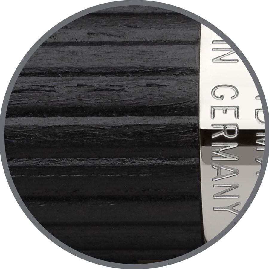 Graf von Faber-Castell đã chọn loại gỗ mun tốt nhất, có thể nhận biết qua kích thước vân nhỏ và màu sắc đậm tự nhiên, không phải do nhuộm màu (identifiable by the small grain size, and the rich, dark colour, not from staining but found only in the very best quality of ebony) . Bề mặt gỗ được xử lý bằng dầu và sáp tự nhiên để bảo vệ và tôn lên vẻ đẹp tự nhiên, không qua sơn phủ, giữ nguyên cảm giác sần tự nhiên của gỗ quý (The wood is treated with natural oils and waxes to protect the wood and bring out its natural beauty. No lacquering is done) .