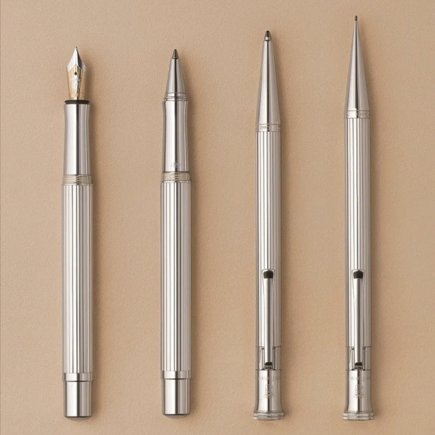 Bạc sterling 925 – hợp kim quý với 92.5% bạc nguyên chất – từ lâu đã được ưa chuộng trong chế tác trang sức và vật phẩm cao cấp nhờ vẻ đẹp sáng mịt, ấm áp và khả năng giữ giá trị theo thời gian. Trên cây bút Classic, bề mặt bạc được gia công với cấu trúc rãnh xoắn filigree tinh xảo – yếu tố thiết kế định hình của dòng Classic – tạo hiệu ứng ánh sáng lung linh và cảm giác cầm nắm chắc chắn . Những dấu hiệu nhận biết (hallmark) được khắc tinh tế trên phần grip, nắp và đuôi bút, tiết lộ cho người sành sỏi giá trị đích thực của cây bút được làm từ bạc quý .