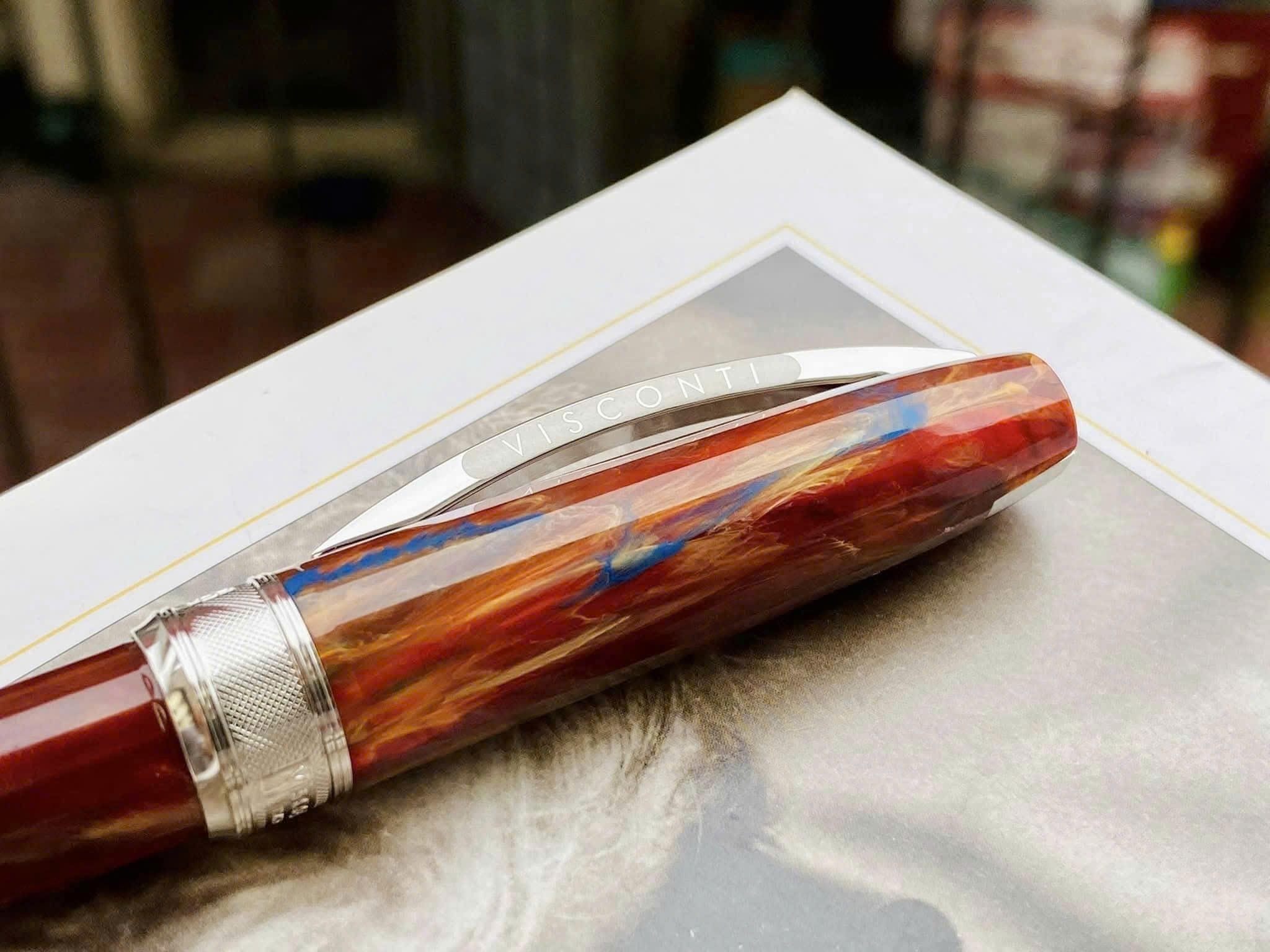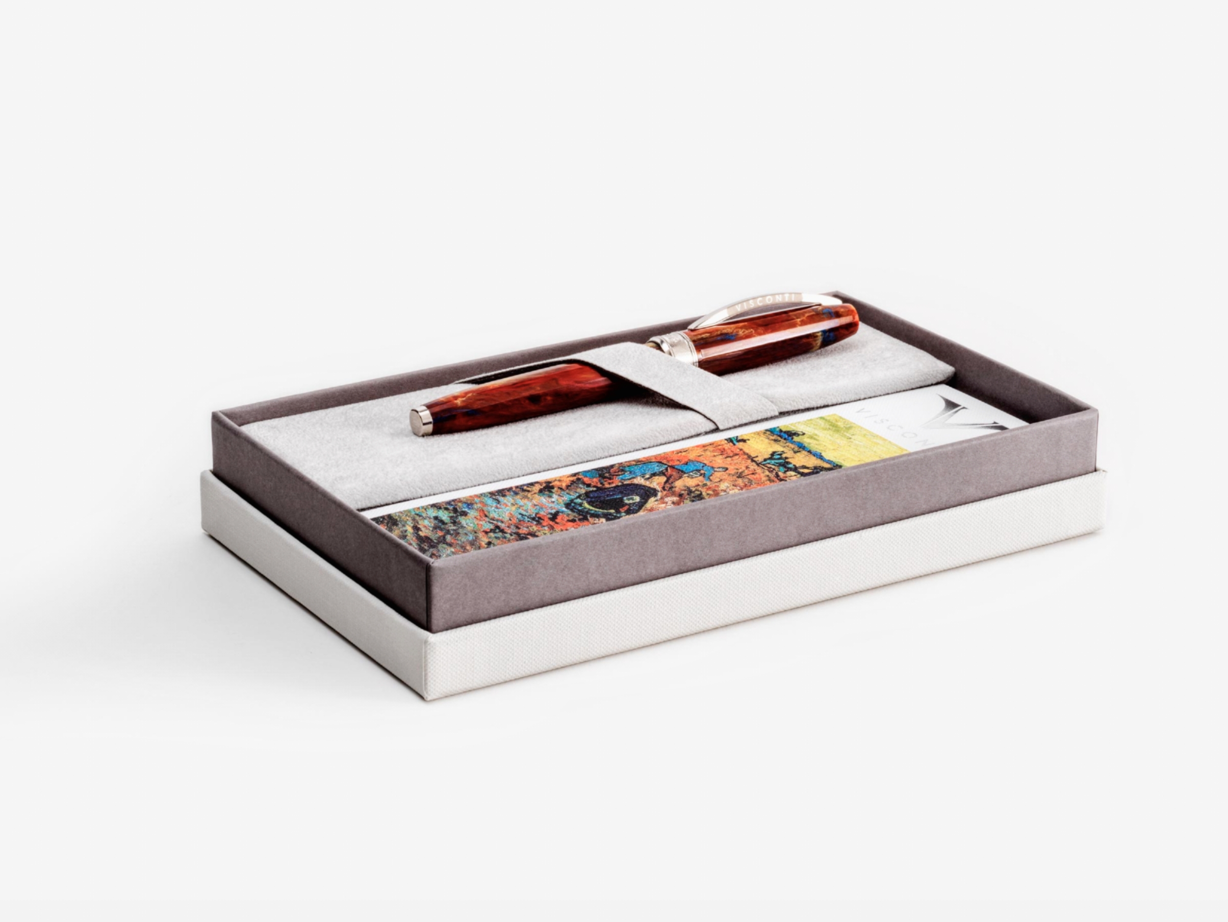 Visconti đã khắc họa tinh thần ấy qua những cây bút với sắc đỏ cam rực rỡ của những vườn nho, được tạo nên từ kỹ thuật pha trộn resin tự nhiên độc quyền . Những đường vân xoáy (swirls) của màu đỏ, cam và nâu hòa quyện tinh tế trên thân bút, tái hiện chính xác bảng màu độc đáo của danh họa . Nhờ sự pha trộn thủ công các chất tạo màu khác nhau, mỗi cây bút là một tác phẩm độc bản, không trùng lặp, mang vẻ đẹp cá nhân hóa riêng .