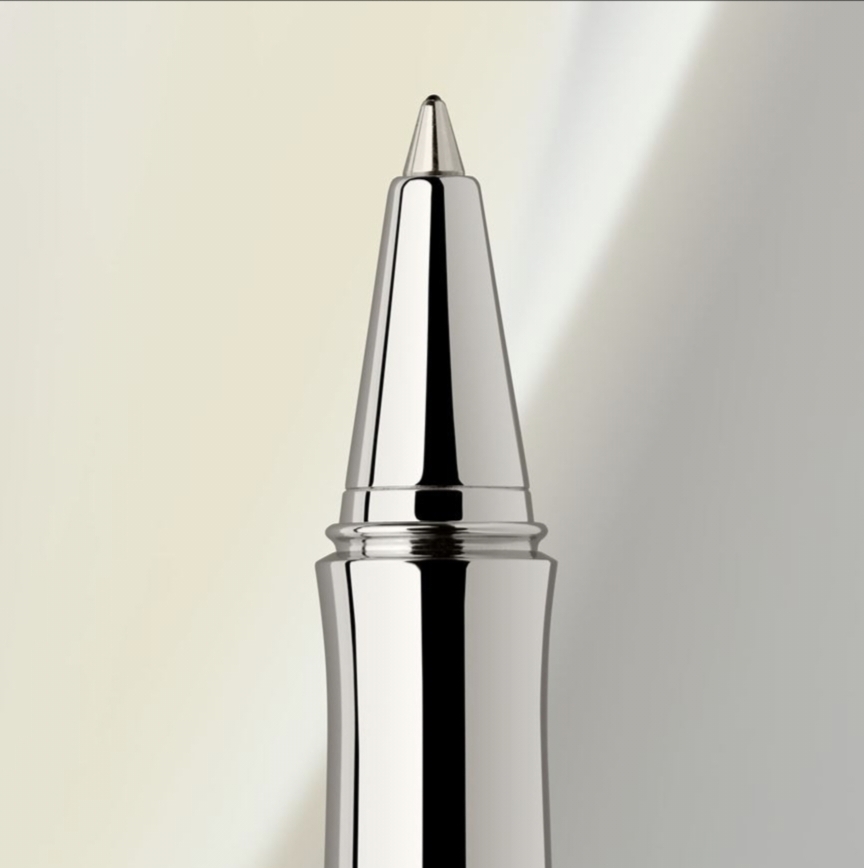 Các chi tiết kim loại bao gồm nắp bút, kẹp bút và phần đuôi được mạ rhodium (rhodium-plated) sáng bóng . Rhodium là kim loại quý thuộc nhóm bạch kim, có độ sáng cao và khả năng chống xỉn màu vượt trội, mang lại vẻ đẹp sang trọng và bền bỉ theo thời gian.