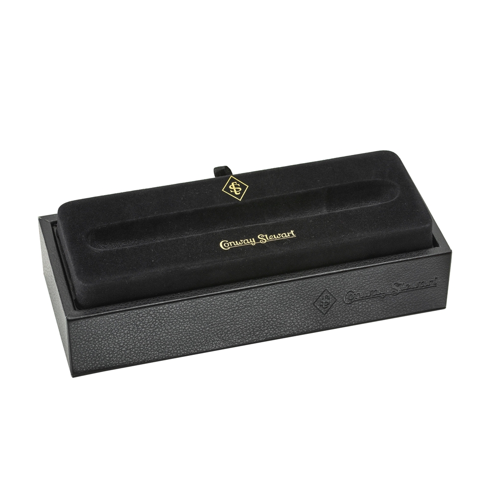 Mỗi cây bút máy được đựng trong hộp màu đen nguyên bản của Conway Stewart, đóng vai trò như một vật trang trí trên bàn làm việc trang nhã, đồng thời đi kèm với Giấy chứng nhận tính xác thực, Hướng dẫn sử dụng Conway Stewart và một miếng vải đánh bóng đặc biệt để giữ cho bút của bạn luôn trong tình trạng sáng bóng.