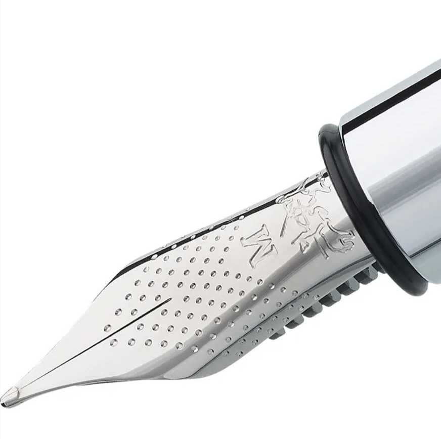 Tương phản hoàn hảo với vẻ đẹp ấm áp của gỗ óc chó là các chi tiết kim loại được mạ chrome đánh bóng sáng bóng (polished chrome-plated metal) tinh xảo, bao gồm nắp bút (cap), phần grip (grip section) và kẹp bút (clip) . Lớp hoàn thiện sáng bóng này không chỉ tạo điểm nhấn sang trọng, hiện đại mà còn thể hiện đẳng cấp chế tác bậc thầy của thương hiệu Đức.