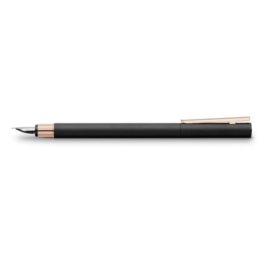 Kế thừa tinh hoa từ hơn 260 năm chế tác, cây bút máy Faber-Castell Neo Slim Metal Black Matte & Rose Gold là hiện thân hoàn hảo cho triết lý của thương hiệu: một thiết kế thanh lịch, tối giản nhưng đầy cuốn hút, được chế tác từ chất liệu cao cấp, là người bạn đồng hành lý tưởng cho các bạn trẻ năng động, dân văn phòng và những ai yêu thích vẻ đẹp hiện đại, pha chút lãng mạn trong công việc hàng ngày . Dòng sản phẩm Neo Slim được thiết kế dành riêng cho giới trẻ chuyên nghiệp (young professionals) và những người dẫn đầu xu hướng (trend-setters) , những người có gu thẩm mỹ tinh tế và kỳ vọng một vẻ ngoài tinh tế, hiện đại cùng cảm giác cầm nắm mát lạnh, mịn màng (cool, smooth feel) .