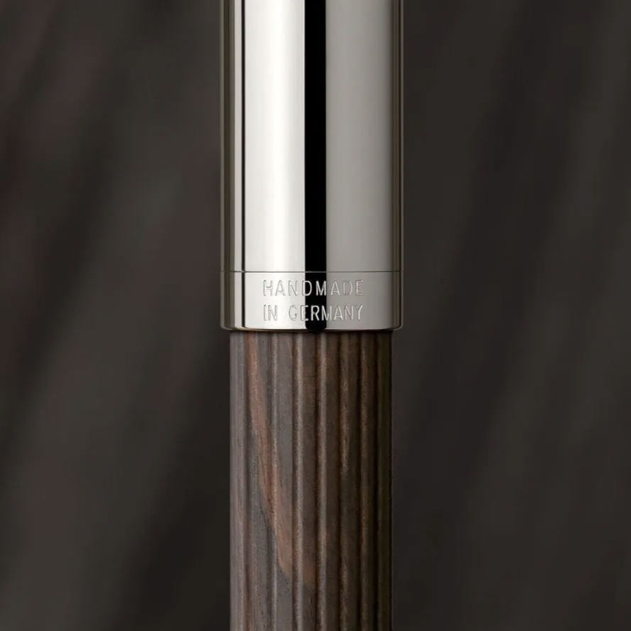 Hoàn thiện với lớp phủ Platinum cao cấp, điểm xuyết đường chỉ khắc tinh tế, tạo nên sự tương phản hoàn hảo giữa ánh bạc sang trọng và sắc đen huyền bí của thân gỗ. Âm thanh "click" khi đóng nắp bút là kết tinh của cơ khí chính xác Đức – chắc chắn, êm ái, dứt khoát.