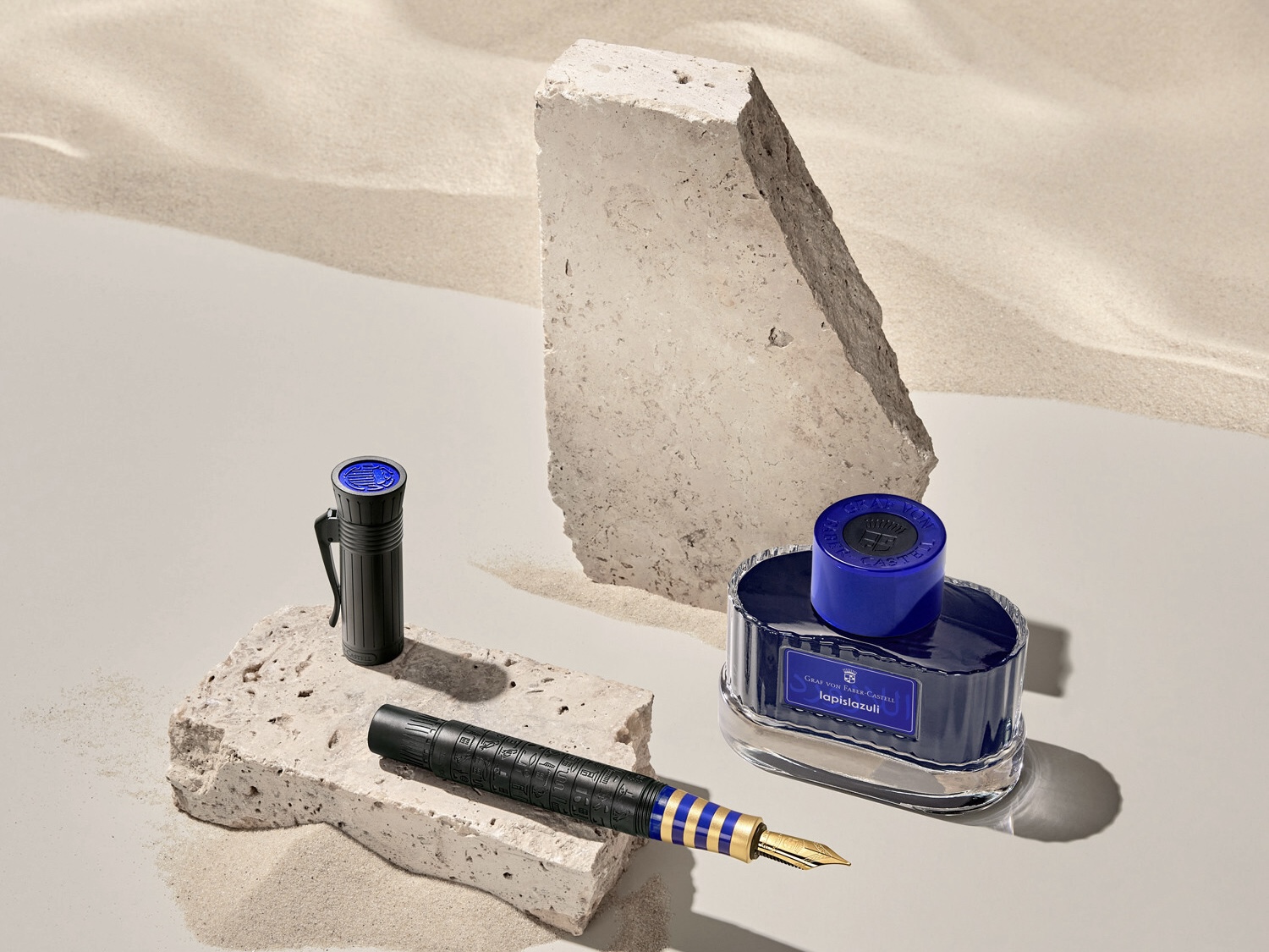 Mỗi cây bút máy Pen of the Year 2023 đều được tặng kèm một lọ mực lapis lazuli 75ml (lapis lazuli ink bottle) với thiết kế đặc biệt dành riêng cho phiên bản giới hạn – nắp màu xanh lam thay vì bạc như phiên bản tiêu chuẩn . Màu mực xanh lam đậm lấy cảm hứng từ màu xanh Ai Cập (Egyptian blue) – một trong những màu nhân tạo lâu đời nhất, từng tô điểm cho vương miện Nefertiti và mặt nạ Tutankhamun .