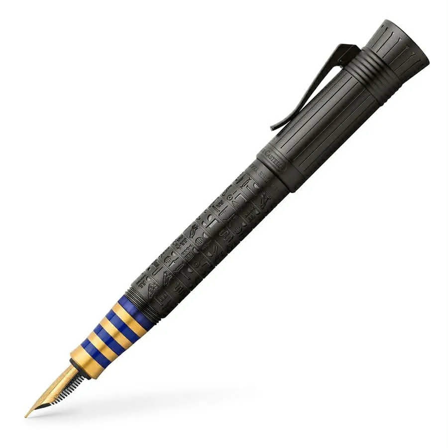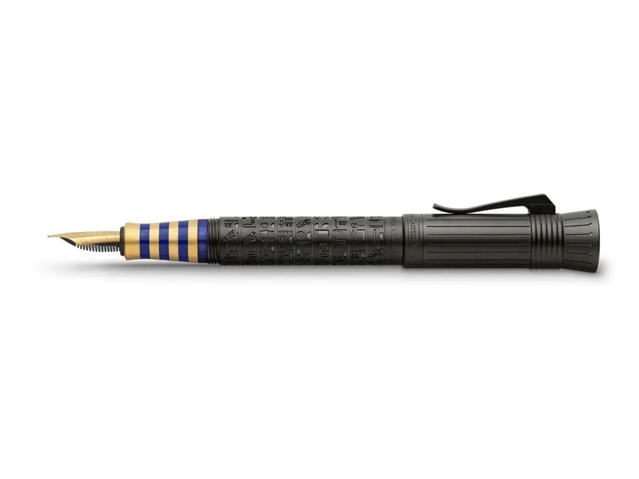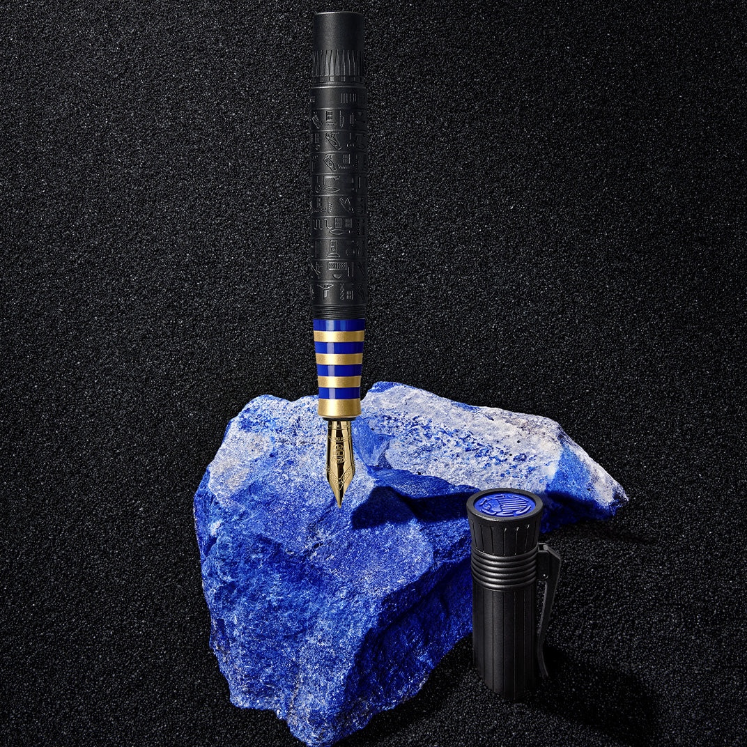 Lấy cảm hứng từ xứ sở của những Pharaoh, Pen of the Year 2023 ra đời như một sự tri ân vẻ đẹp huyền bí và trường tồn của Ai Cập cổ đại – nơi thân bút phủ DLC đen huyền khắc tên mười hai vị thần bằng chữ tượng hình, nắp bút mô phỏng vương miện của nữ hoàng Nefertiti, những vòng vàng 24k và xanh lam lấp lánh gợi nhớ mặt nạ vàng Tutankhamun, cùng viên đá lapis lazuli tái tạo với hình bọ hung scarab linh thiêng.