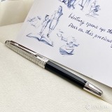 Ngòi bút bằng vàng 18K-750 phủ Rhodium tone trắng. Bút sử dụng ống mực hoặc bơm mực từ lọ qua converter.