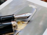 Ngòi bút bằng vàng 18C-750 phủ Rhodium cùng tone với cài bút.