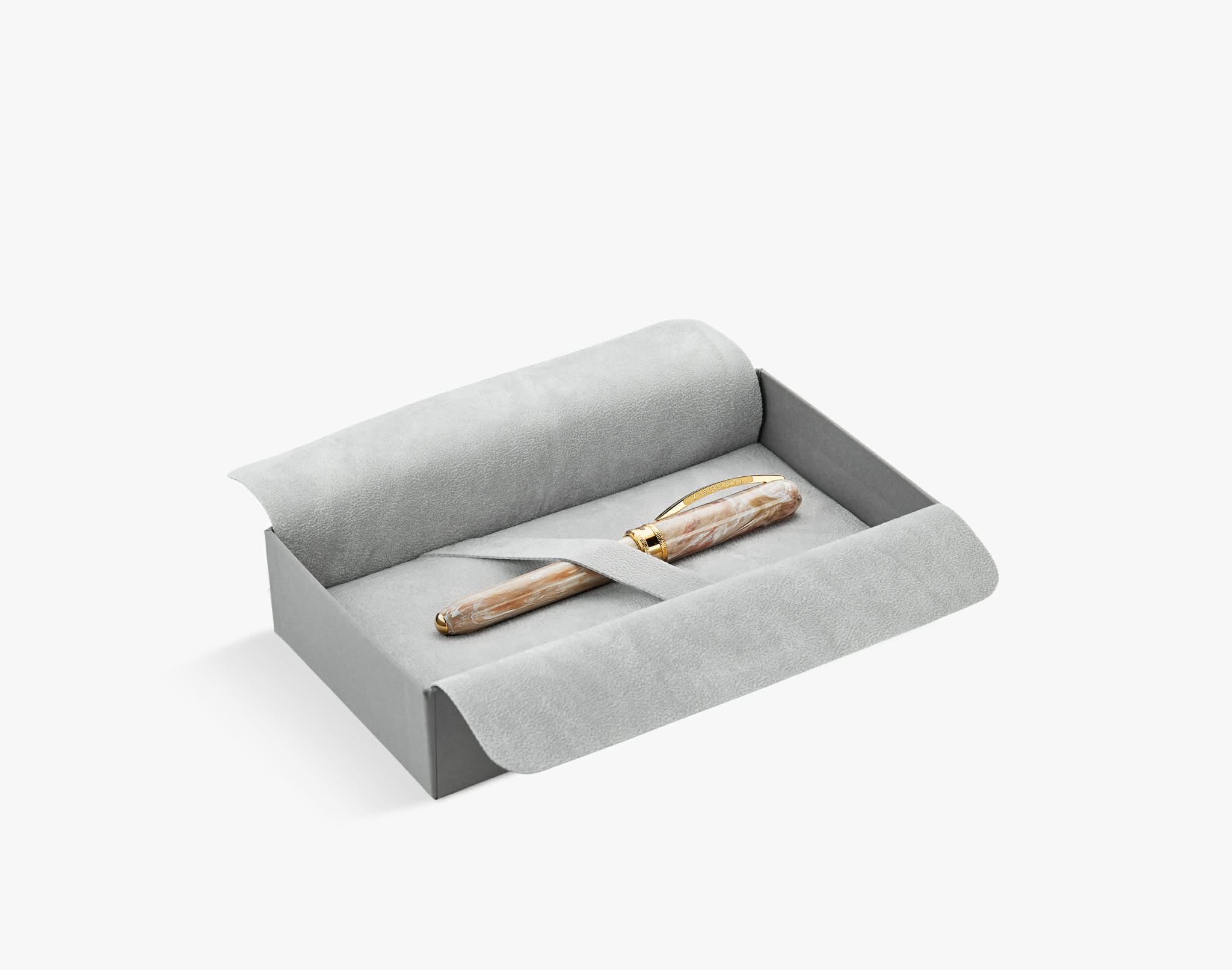 Phụ kiện kim loại mạ vàng vàng (yellow gold plated): Toàn bộ phần kim loại của bút – từ clip, vòng đai cho đến đuôi bút – đều được hoàn thiện với lớp mạ vàng vàng PVD sáng bóng, tôn vinh vẻ đẹp cao quý của nhà thơ vĩ đại .