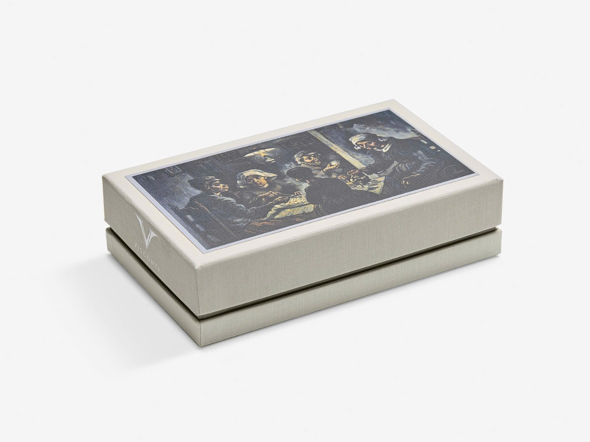 Mỗi cây bút Visconti Van Gogh Potato Eaters được đóng gói trong một hộp quà đặc biệt cao cấp (collectible gift box) sang trọng, được trang trí bằng hình ảnh bức tranh "The Potato Eaters" trên nắp hộp . Bên trong hộp quà còn có: