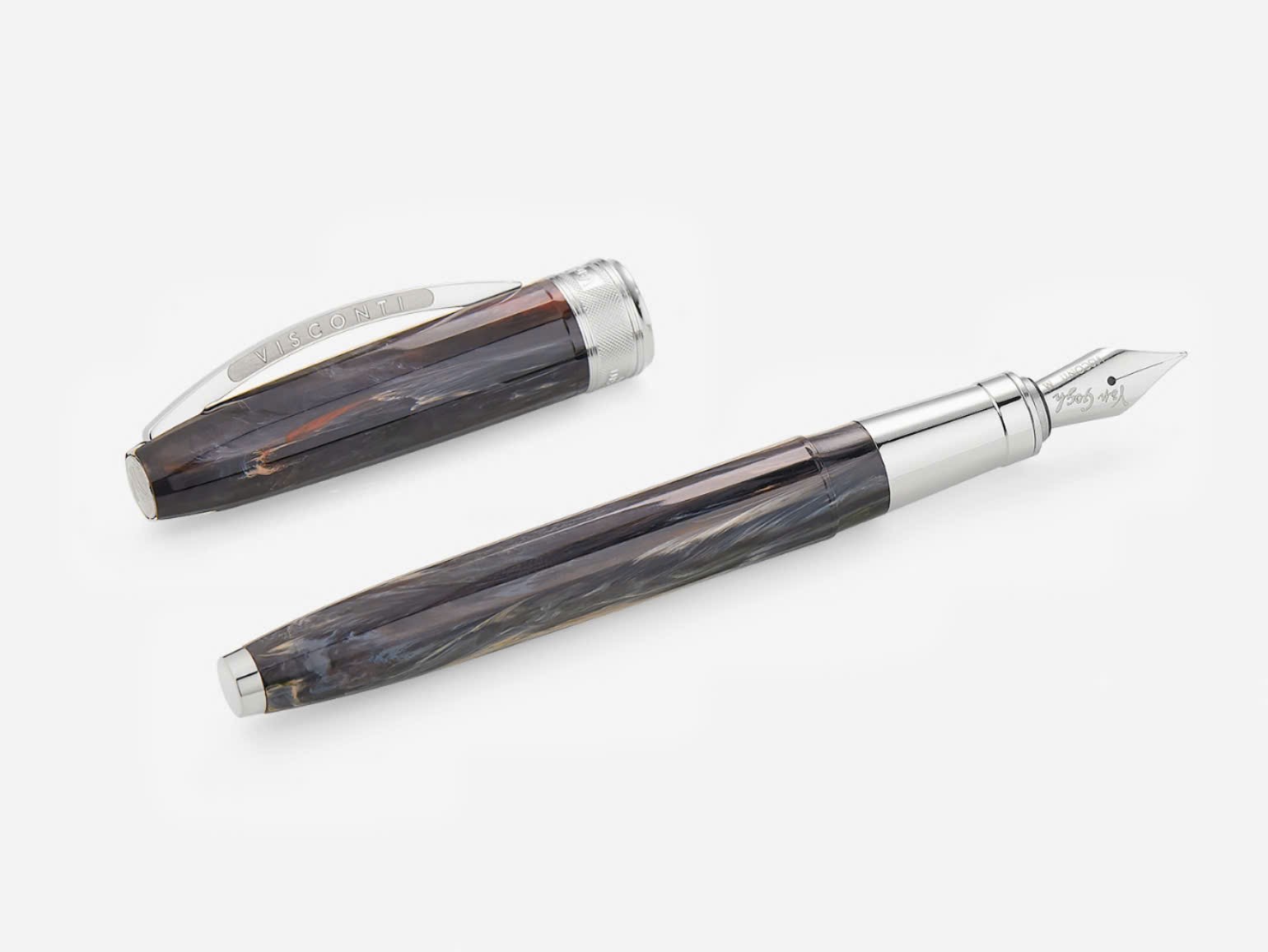 Hệ thống đóng mở từ tính (magnetic snap-on cap): Trên phiên bản bút máy và bút dạ bi, Visconti trang bị hệ thống đóng mở bằng nam châm tinh tế và chắc chắn . Nắp bút sẽ tự động hút và khóa chặt khi đưa lại gần thân, vừa tiện lợi vừa an toàn. Nắp có thể cài lên đuôi khi viết (postable) với chiều dài 15.7cm, tạo sự cân bằng hoàn hảo .