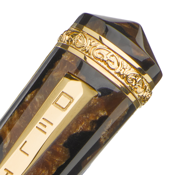 Cài bút mạ vàng có khắc chữ "DELTA". Vòng Cap Band được làm bằng bạc khối Sterling 925, mạ vàng (vermeil) có hình khắc nổi lấy cảm hứng từ thiết kế của người Pompeii cổ đại, một chủ đề điển hình của bút Delta trong quá khứ.