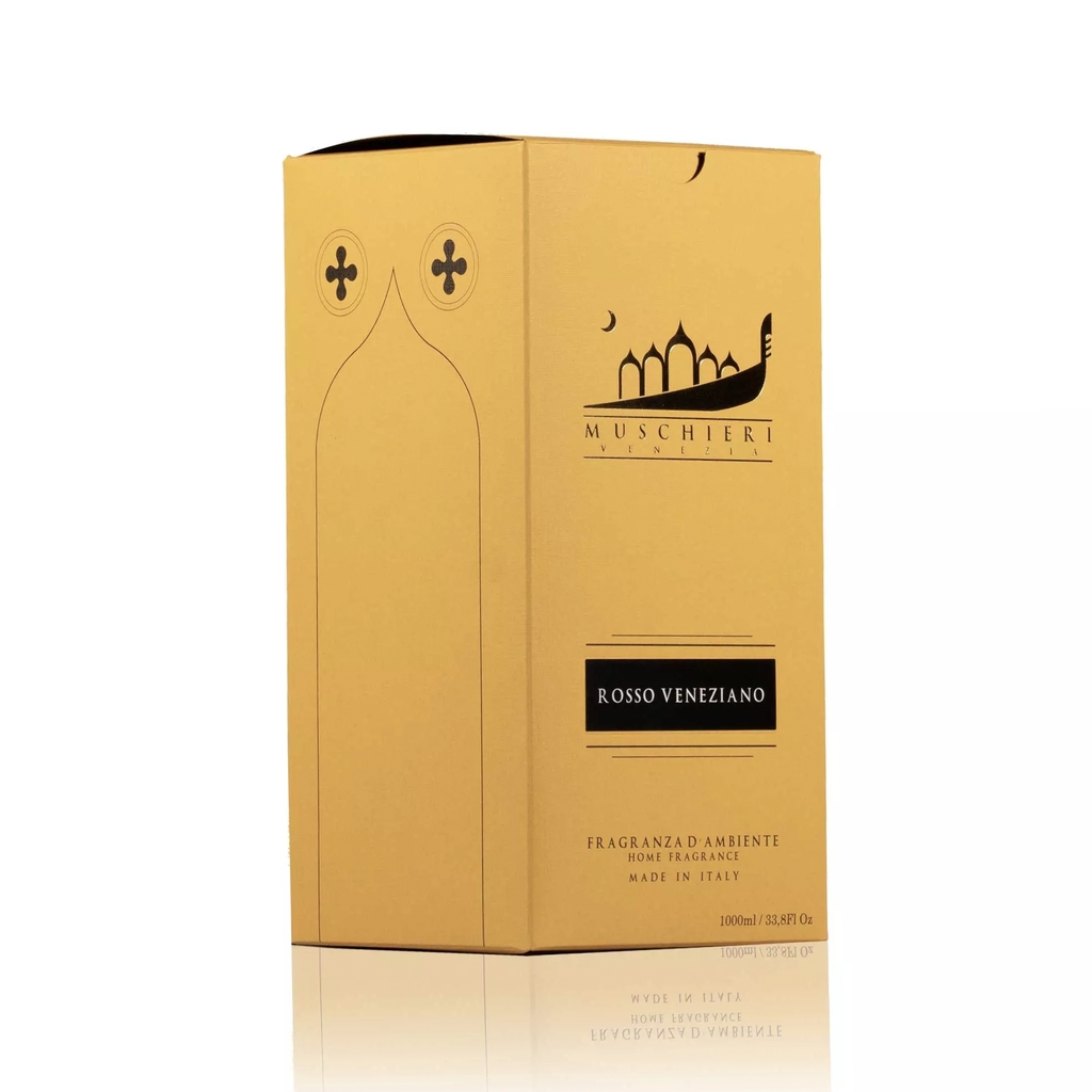 Rosso Veneziano (tiếng Ý nghĩa là "Đỏ Venice") là một hương thơm phức hợp, sang trọng và đầy cuốn hút, được lấy cảm hứng từ những khung cảnh lãng mạn và đam mê nhất của thành phố nổi. Đây là mùi hương của những buổi hoàng hôn nhuộm đỏ các cung điện dọc kênh Grand, của những quả quý chín mọng trong vườn, và của những bông hồng đỏ thắm trong tay các quý cô Venice.