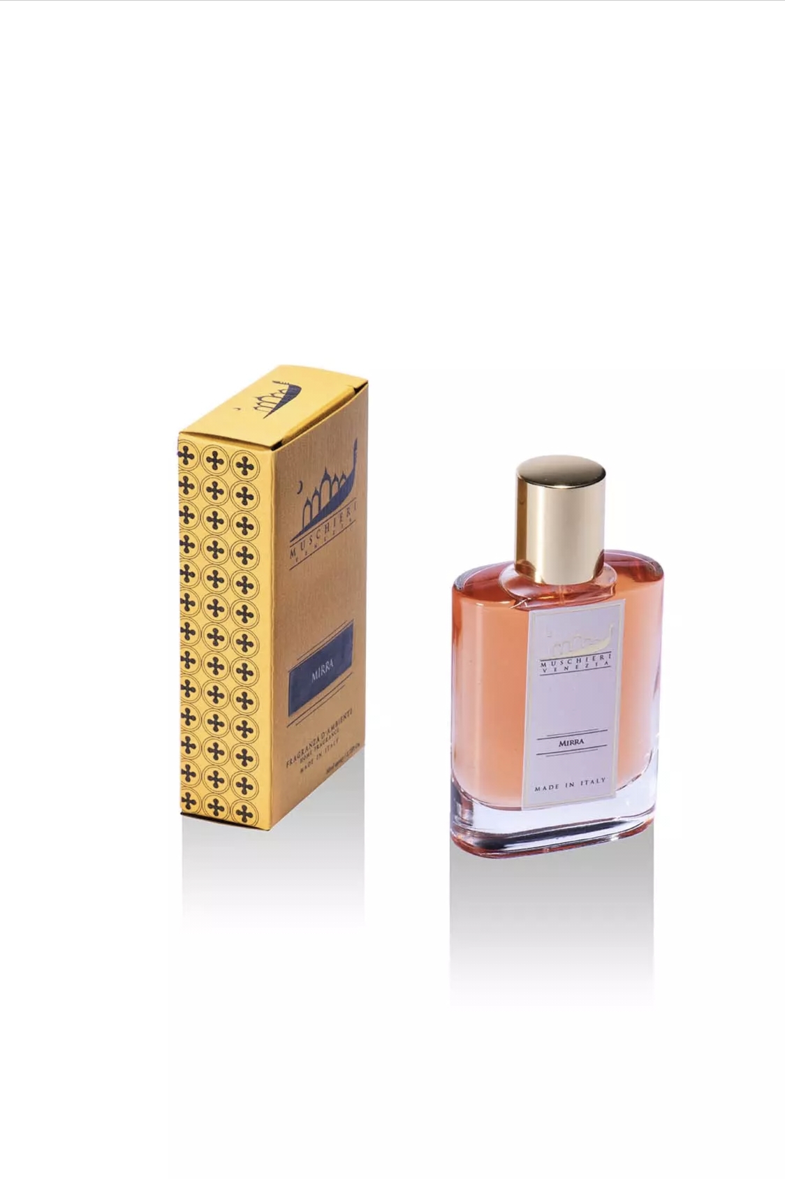 Nếu Ribes e Ambra là bản giao hưởng mùa đông, Melograno Puro là khúc ca mùa hạ, Magia Veneziana là câu chuyện cổ tích Venice, Rosso Veneziano là bản tình ca đam mê, Mediterraneo là làn gió biển trong lành, Carezza di Talco là sự dịu dàng thuần khiết, Egyptian là huyền thoại sông Nile, và Kapadokya là vùng đất thần tiên, thì Muschieri Venezia Mirra chính là tiếng gọi thiêng liêng từ những nền văn minh cổ đại – nơi nhựa thơm Mirra được tôn kính như máu của các vị thần, linh hồn của những nghi lễ tôn giáo và là báu vật trên những con đường tơ lụa huyền thoại.