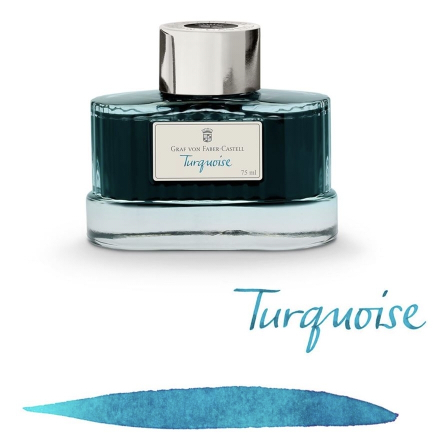 Turquoise của Graf von Faber-Castell là một màu xanh đặc biệt, được mô tả là "siêu đỉnh – mùa hè, biển Nam, cocktail" (super geil Sommer, Südsee, Cocktail) . Điểm đặc biệt của màu mực này là không phải là xanh lam thuần túy mà có sắc thái xanh lá rõ rệt (deutliche Grünanteile) , tạo nên một màu xanh ngọc đích thực như tên gọi. Đây là một sắc thái nhẹ nhàng, tươi mát nhưng vẫn đủ đậm để dễ dàng đọc trên cả trang giấy .