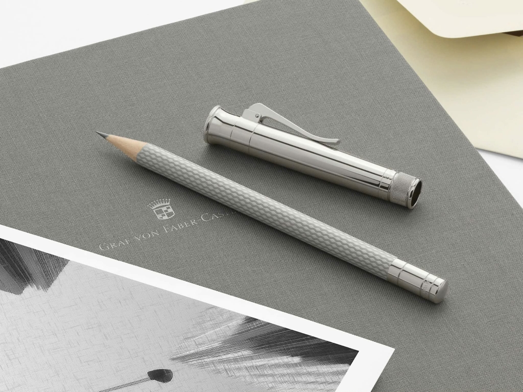 Graf von Faber-Castell cũng sản xuất những cây bút chì bỏ túi Guilloche với nhiều màu sắc khác nhau để phối hợp hoàn hảo với các cuốn sổ này . Bạn có thể chọn bút chì màu xám đá để tạo nên bộ đôi đồng bộ và sang trọng.