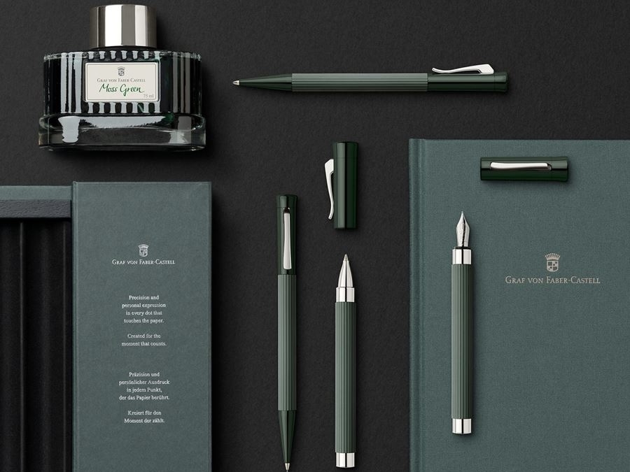 Graf von Faber-Castell cũng sản xuất những cây bút chì bỏ túi Guilloche với nhiều màu sắc khác nhau để phối hợp hoàn hảo với các cuốn sổ này . Bạn có thể chọn bút chì màu xanh rêu hoặc các tông màu tương đồng để tạo nên bộ đôi đồng bộ và sang trọng.